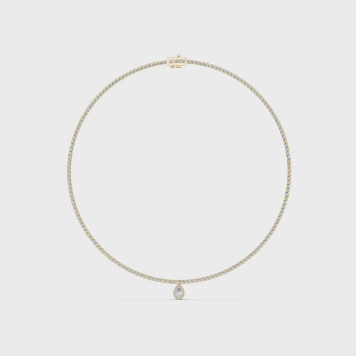 Timeless Elegance, Sustainably Sourced Elevate your everyday style with a touch of modern brilliance. This exquisite necklace features a stunning pear-cut lab-grown diamond, meticulously set to capture and reflect light from every angle. Suspended from...