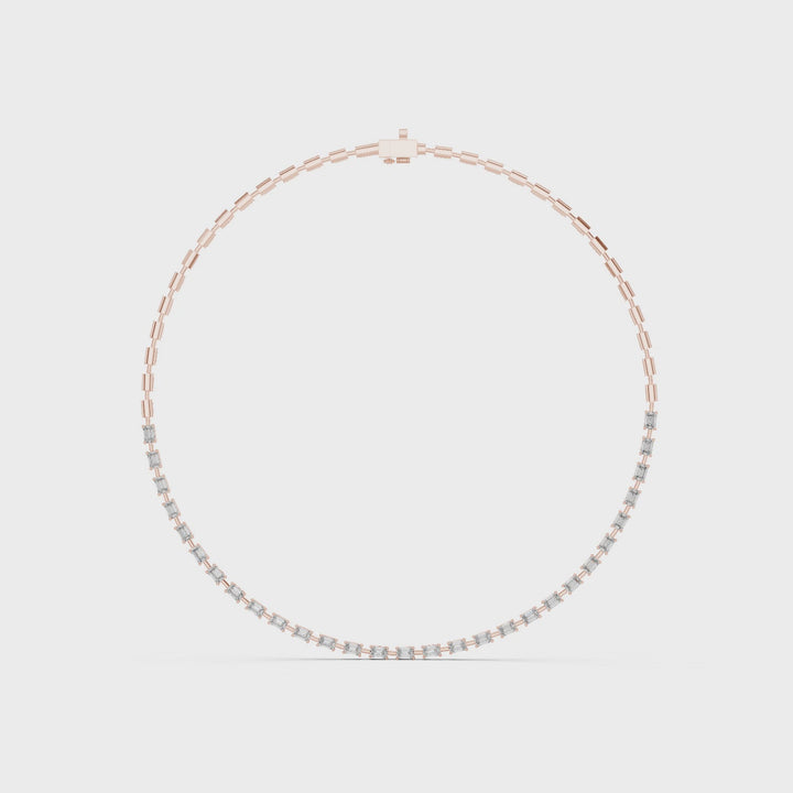 Elevate your everyday elegance with our Emerald-Cut Eternity Necklace. Featuring a seamless row of brilliant lab-grown diamonds, this piece offers the sophisticated hall-of-mirrors effect unique to the emerald cut. Handset in premium sterling silver, it...