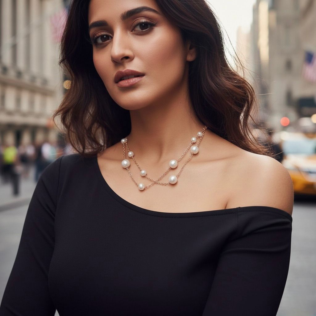 Varied Pearl Sizes: A delightful assortment of lustrous, round pearls creates a modern and playful aesthetic.