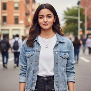 This elegant necklace features a beautifully crafted pendant with a sparkling central gemstone, surrounded by a halo of shimmering crystals, all set in a delicate silver chain.