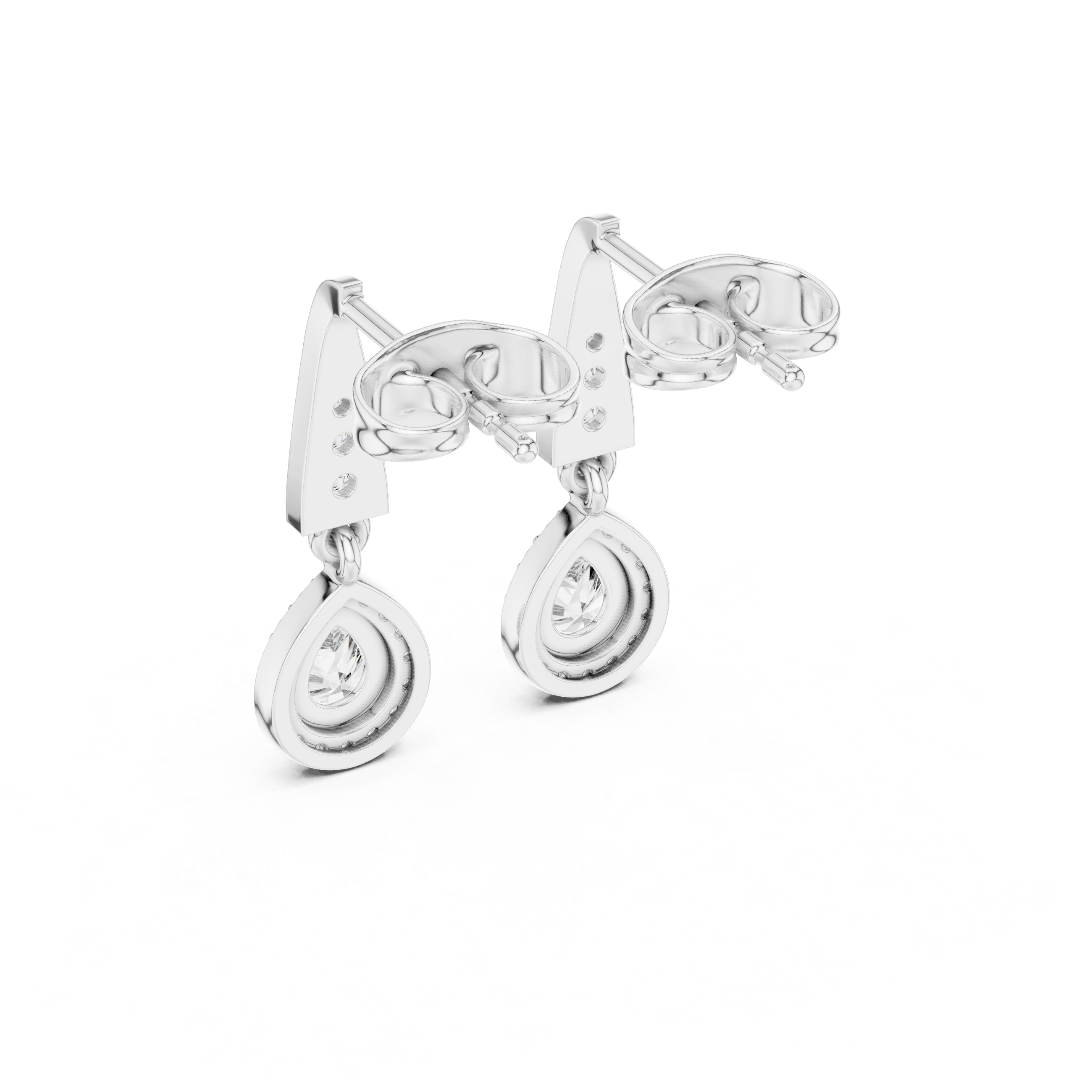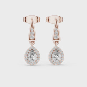Elevate your jewelry collection with these breathtaking lab-grown diamond drop earrings. Crafted in high-polished sterling silver, each earring features a brilliant pear-cut center stone surrounded by a shimmering halo of round-cut lab-grown diamonds.