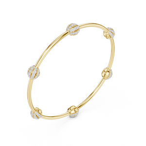 Add a touch of contemporary elegance to your wrist with our Celestial Station Bangle. This exquisite piece features six meticulously crafted "orb" stations, each pavé-set with shimmering lab-grown diamonds that catch the light from every angle.