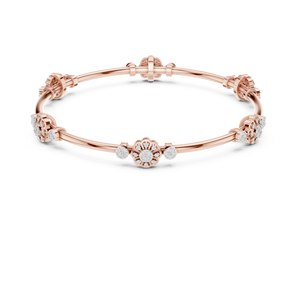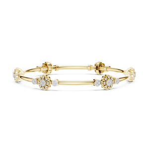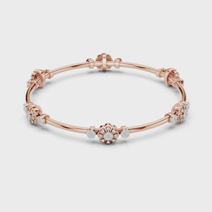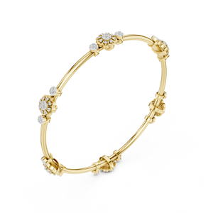 Timeless Elegance Inspired by Nature Celebrate feminine grace with this intricate floral cluster bangle. This piece features a series of delicate flower motifs and circular diamond stations, all shimmering with ethically sourced lab-grown diamonds. Crafted in high-polish sterling silver, its bright, cool tones make it a versatile addition to both bridal wear and evening attire.
