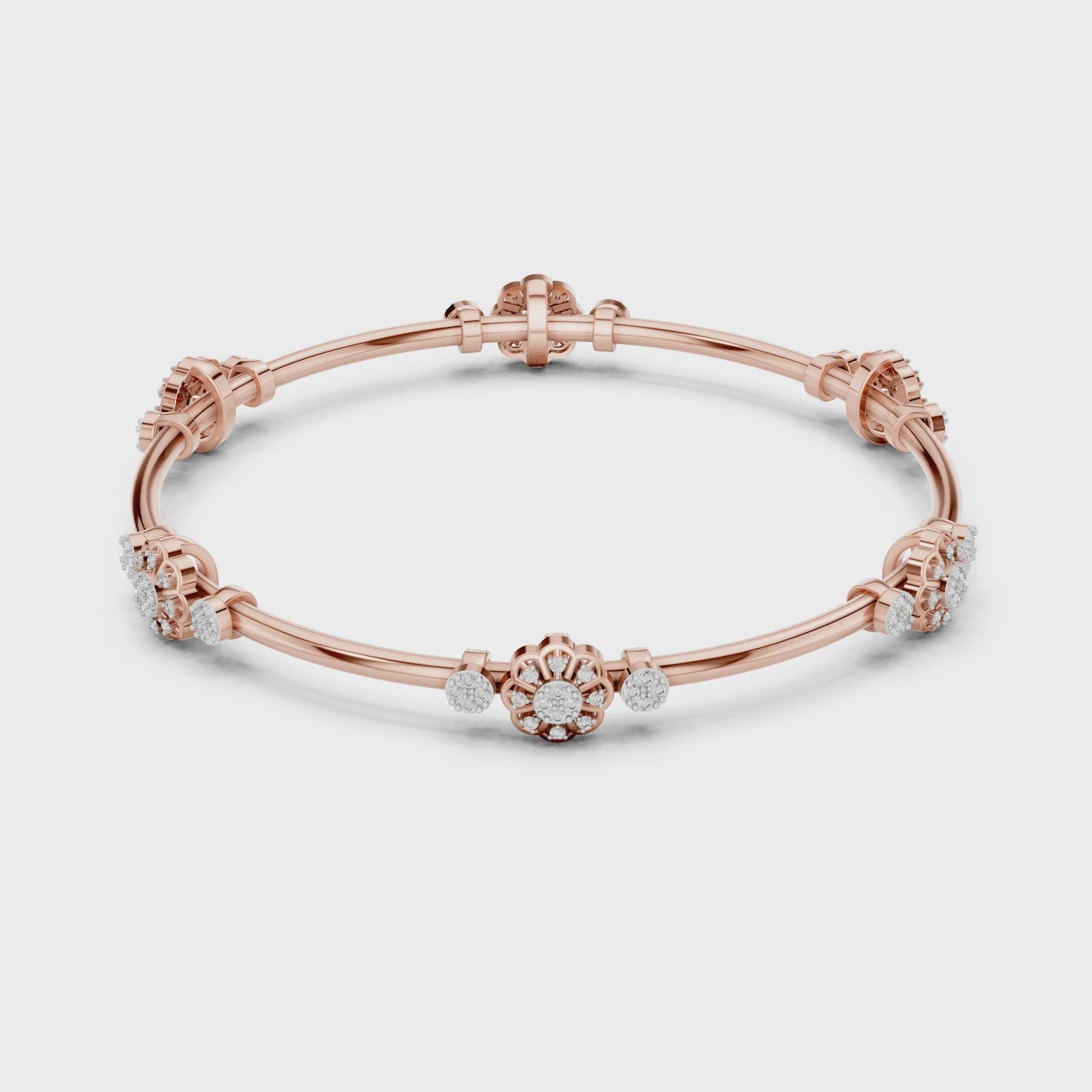 Intricate Artistry: Features beautifully detailed floral clusters alternating with brilliant round diamond accents.