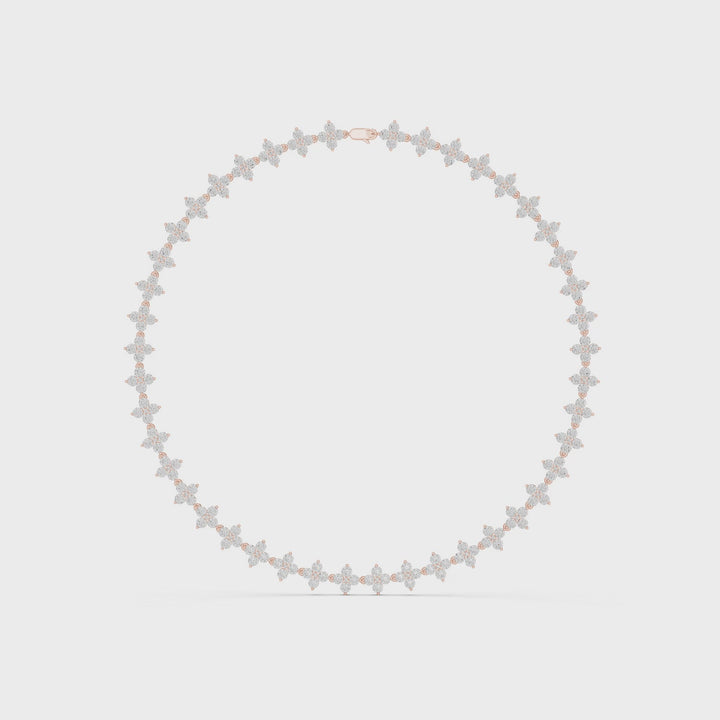 Embrace timeless elegance with our Floral Motif Station Necklace. Meticulously crafted in high-polish sterling silver, this piece features a continuous gallery of delicate four-petal blossoms. Each clover is pavé-set with brilliant lab-grown diamonds, offering an...