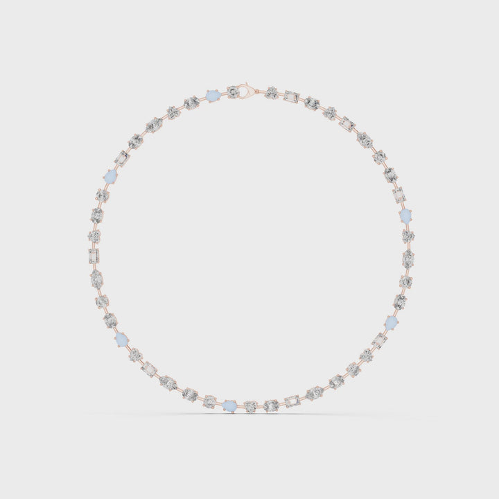 Discover the perfect harmony of brilliance and design. Our Mixed-Cut Necklace showcases the fire of premium lab-grown diamonds, meticulously arranged to highlight the unique beauty of each stone shape. Crafted in shimmering silver, this "all-around"...