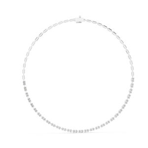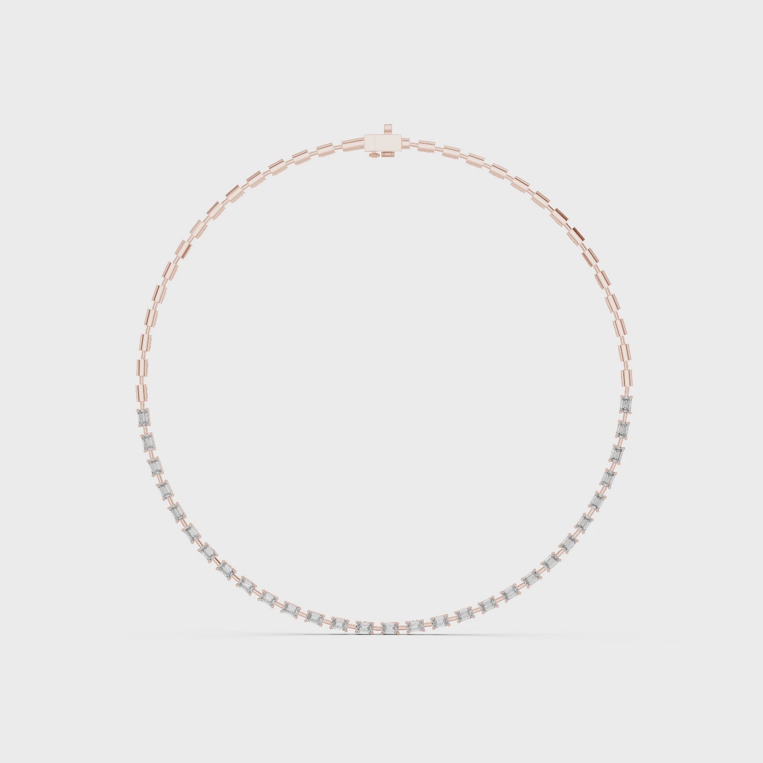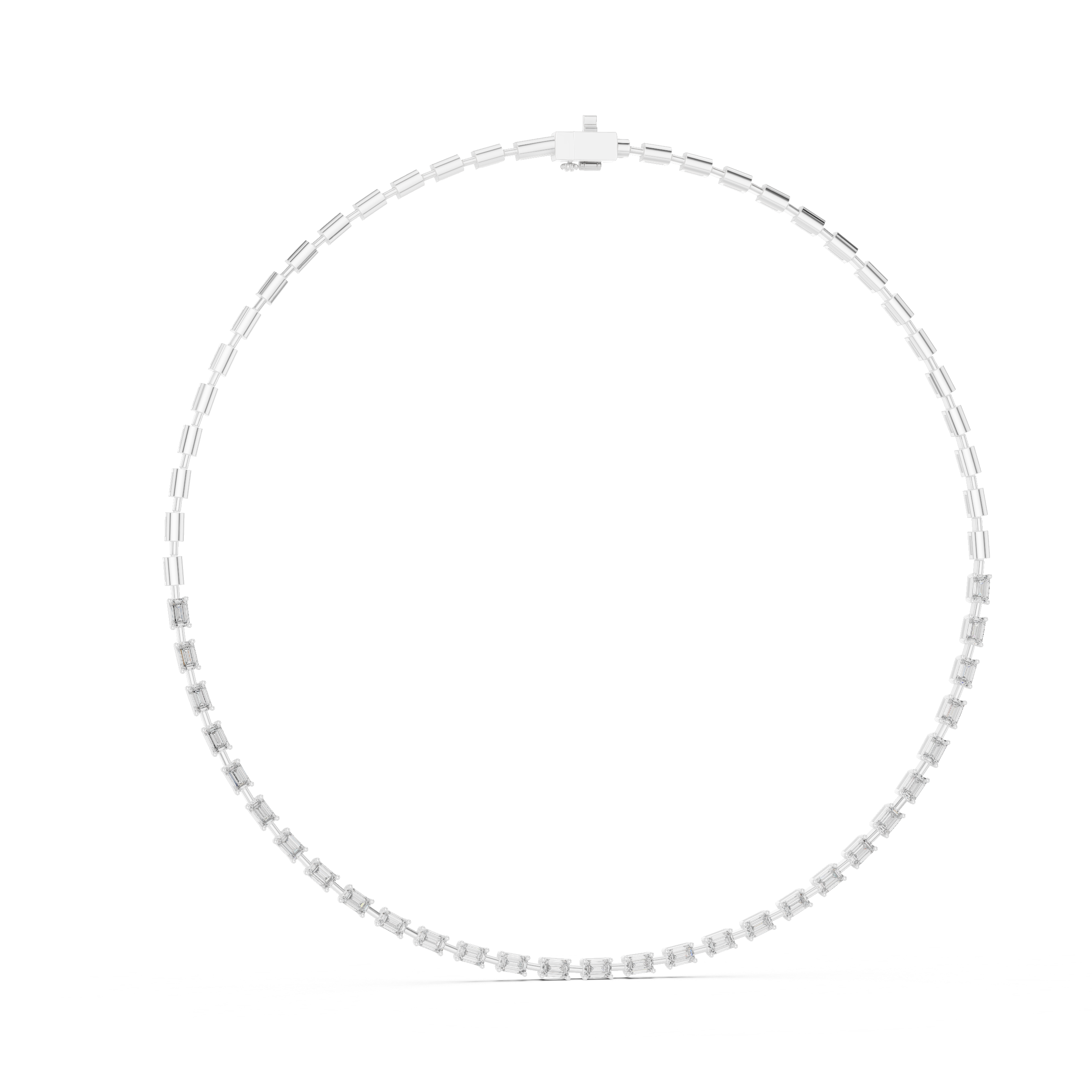 Elevate your everyday elegance with our Emerald-Cut Eternity Necklace. Featuring a seamless row of brilliant lab-grown diamonds, this piece offers the sophisticated hall-of-mirrors effect unique to the emerald cut. Handset in premium sterling silver, it provides a high-jewelry look with a modern, ethical soul. Perfect for layering or making a refined solo statement.