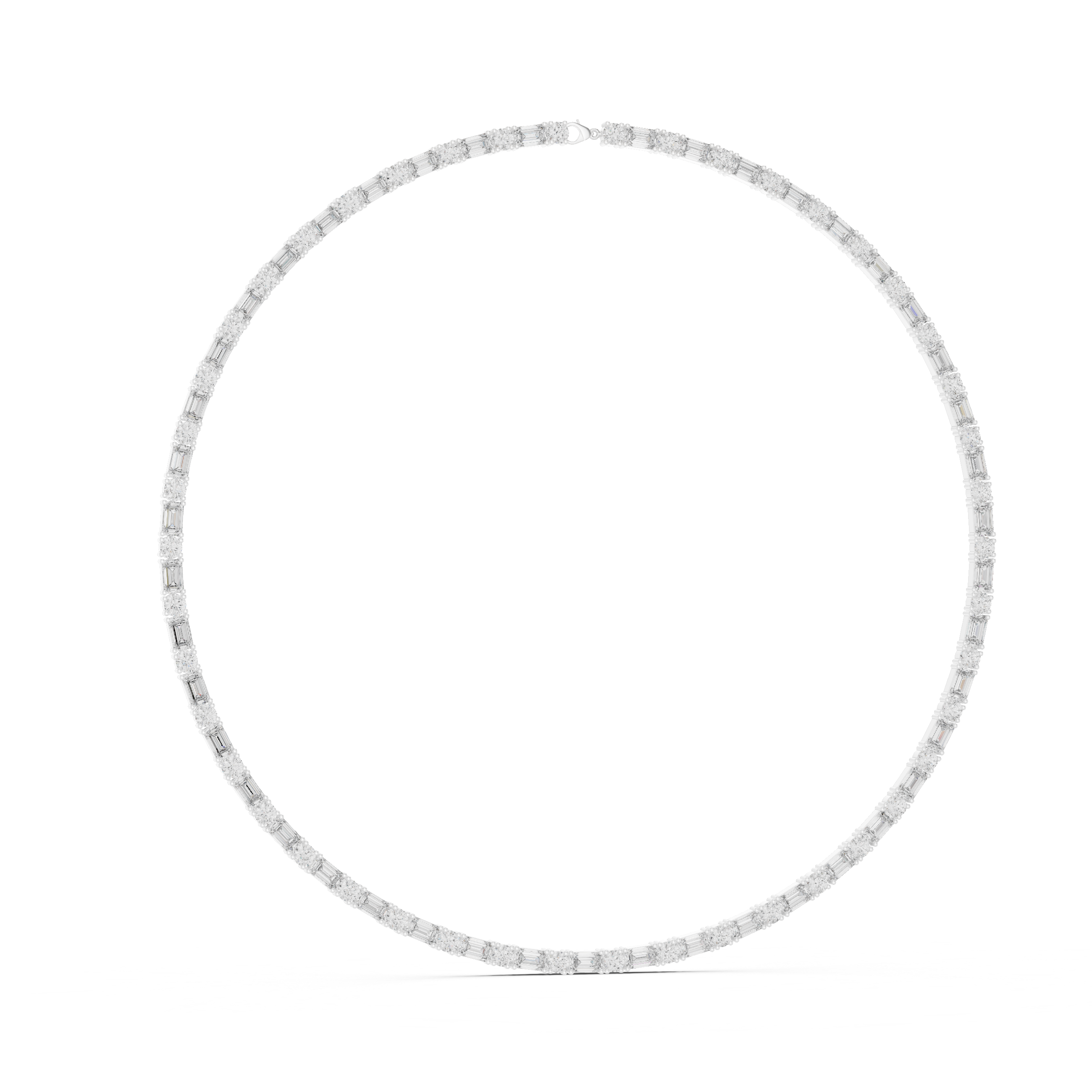 Elevate your jewelry collection with a modern masterpiece of sustainable luxury. This stunning tennis necklace features a seamless circle of brilliant lab-grown diamonds, meticulously set in high-quality 925 sterling silver. Designed with a sophisticated alternating pattern, it offers a rhythmic play of light that captures attention from every angle.
