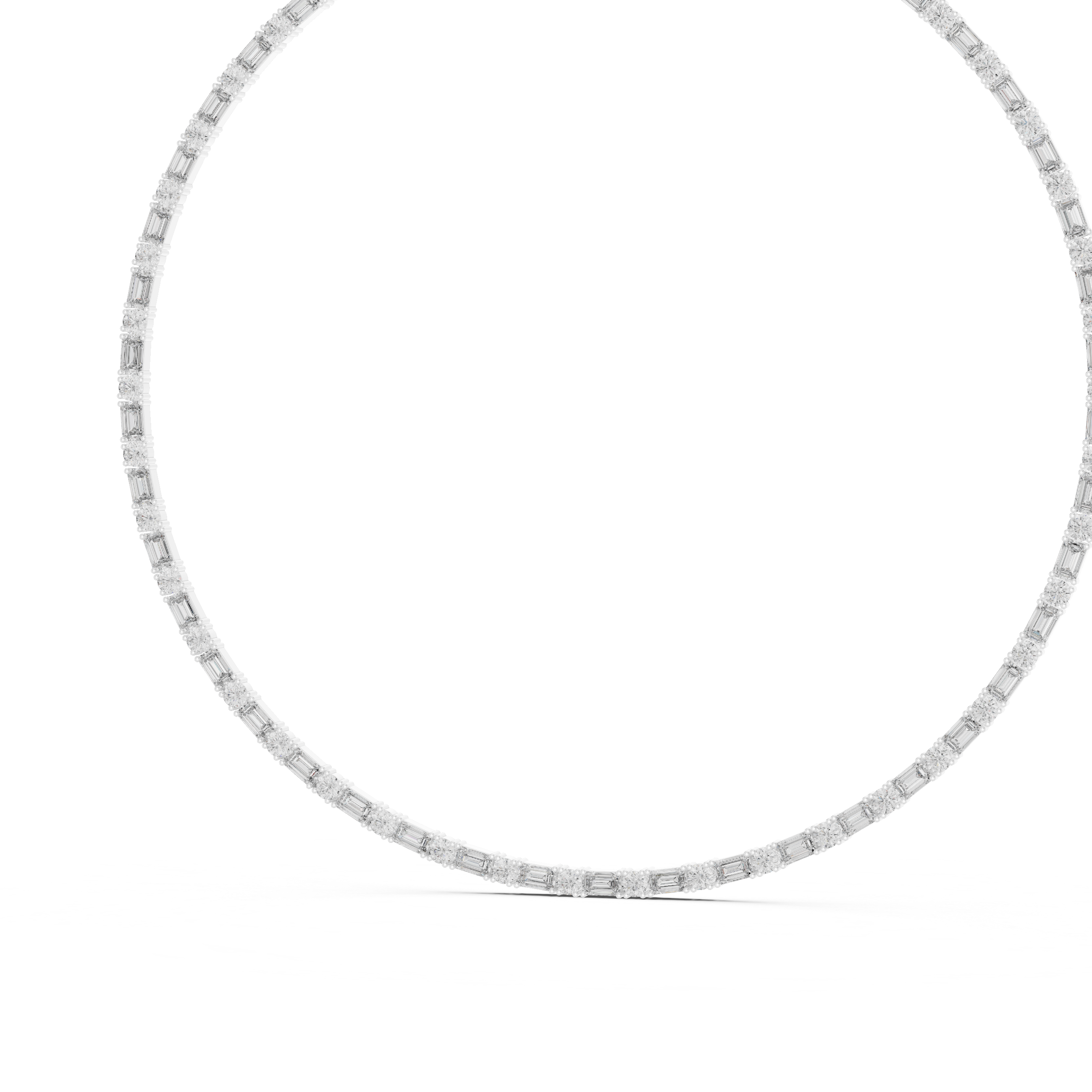 Unique Stone Pattern: Features a captivating sequence of baguette-cut and round brilliant-cut lab-grown diamonds, providing a contemporary twist on the classic tennis style.