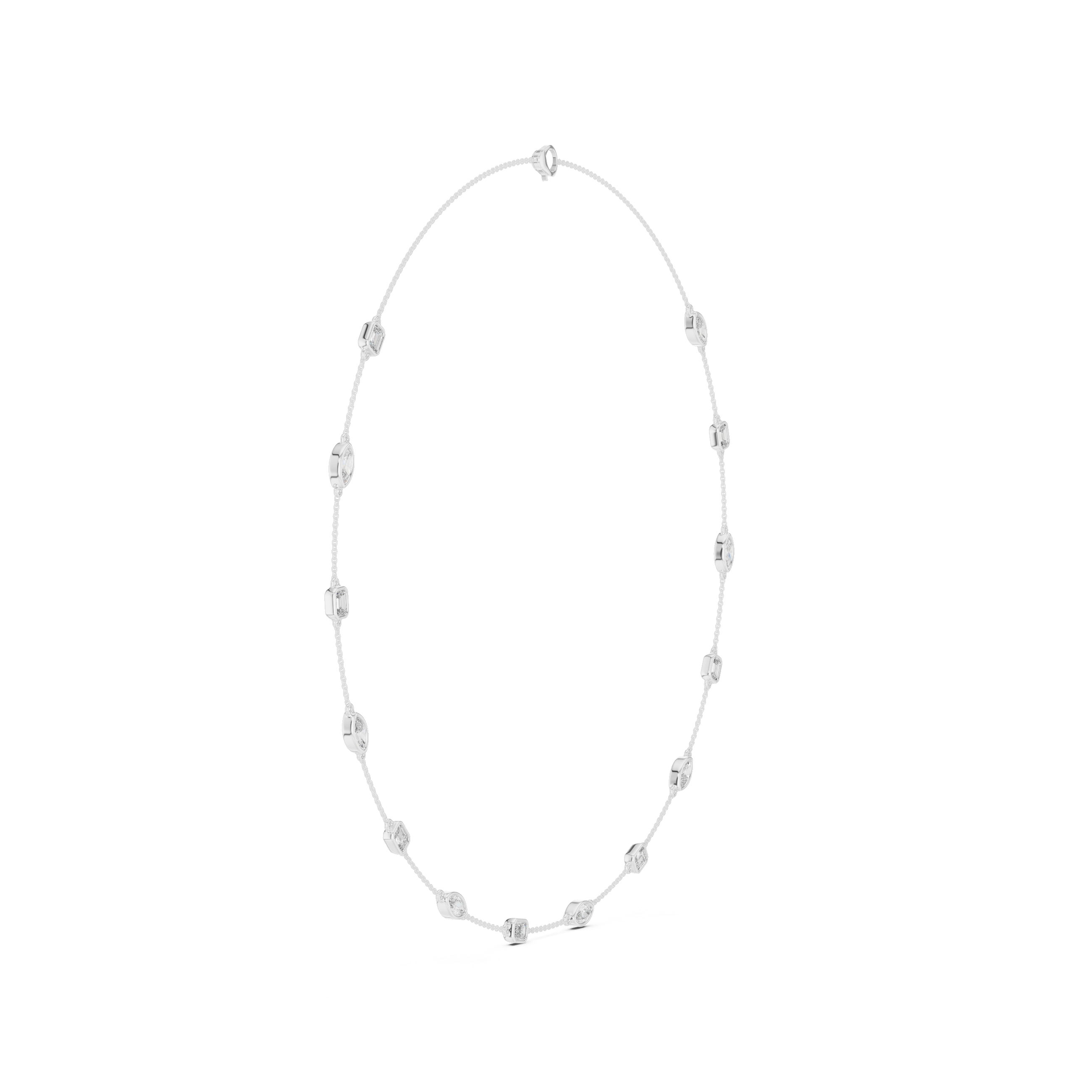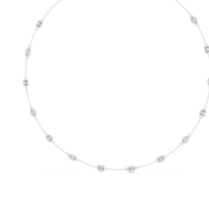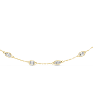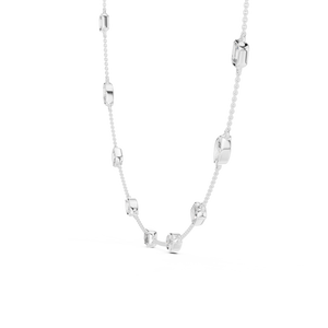 Elevate your everyday elegance with our stunning Mixed-Shape Station Necklace. Featuring a rhythmic sequence of lab-grown diamonds in emerald, marquise, and round brilliant cuts, this piece offers a modern twist on a timeless silhouette. Set in shimmering 925 sterling silver, its delicate profile makes it perfect for layering or wearing as a refined solo statement.