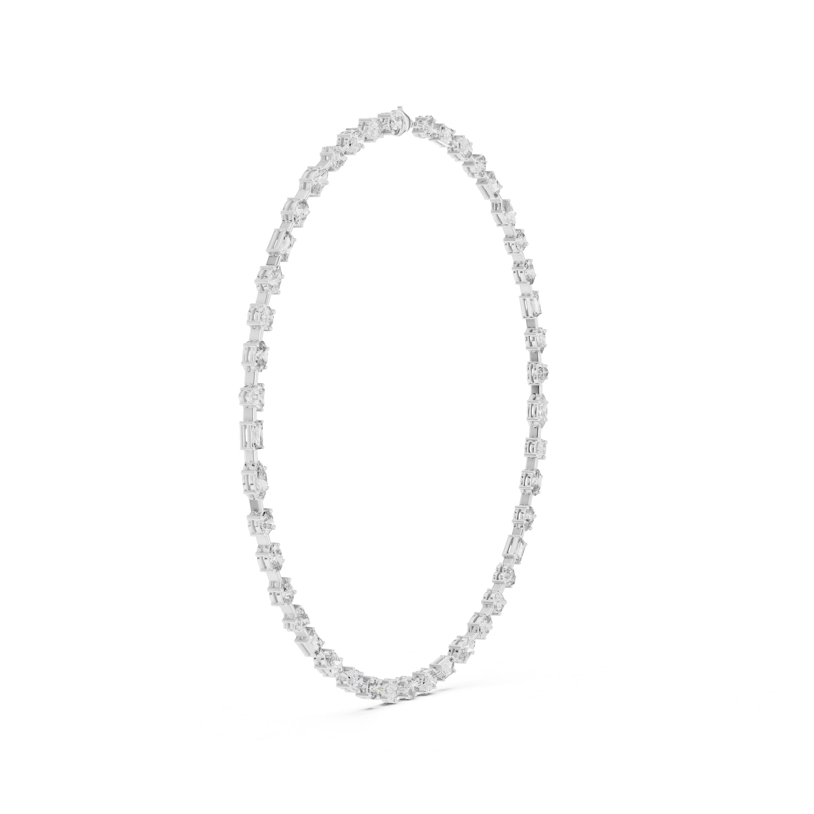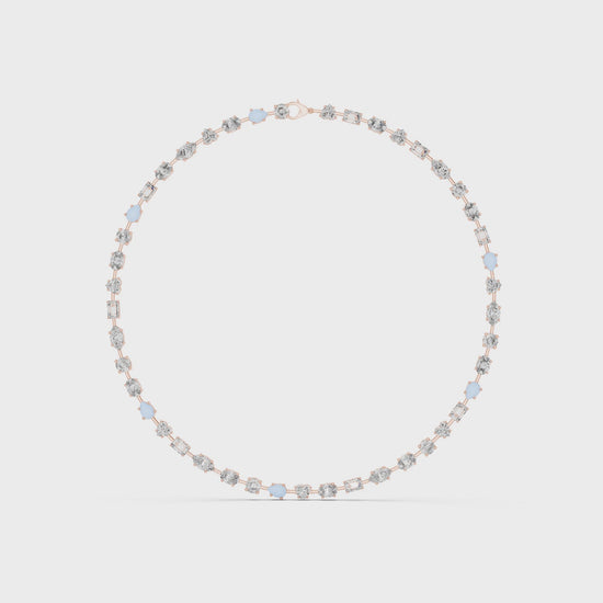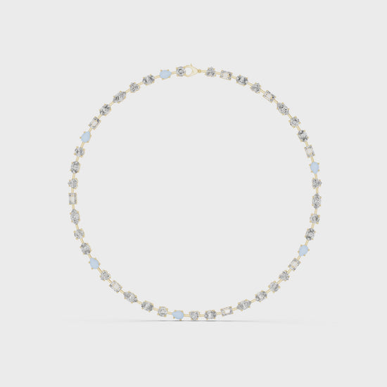 Discover the perfect harmony of brilliance and design. Our Mixed-Cut Necklace showcases the fire of premium lab-grown diamonds, meticulously arranged to highlight the unique beauty of each stone shape. Crafted in shimmering silver, this "all-around" style necklace provides a seamless circle of light around the neck. A sophisticated choice for brides, gala events, or a landmark gift, it represents a commitment to both timeless style and sustainable fine jewelry.