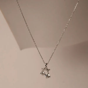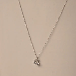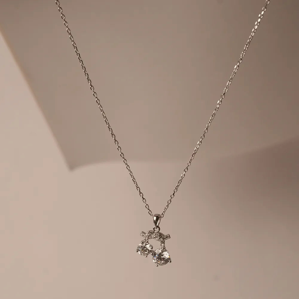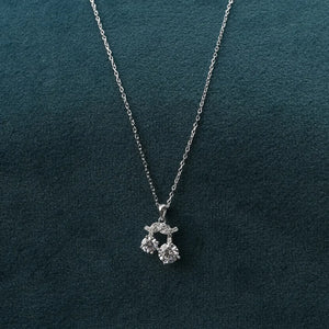 Add a touch of whimsical charm to your look with this delightful twin stone pendant necklace. This unique design features two brilliant, round-cut stones that dangle freely, catching the light and creating beautiful, eye-catching movement.