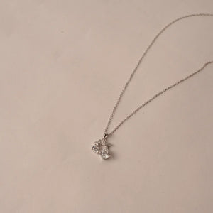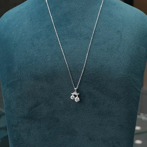 The stones are suspended from a gracefully crafted bail adorned with sparkling pavé stones, adding an extra layer of elegance and detail. This necklace is a perfect blend of playful design and sophisticated sparkle, all set on a delicate sterling silver chain.