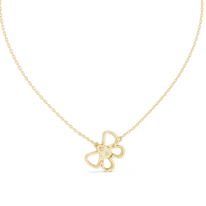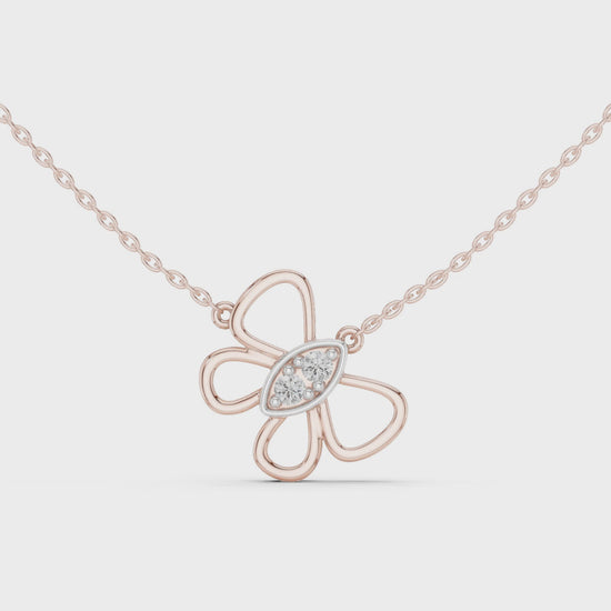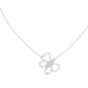 Add a touch of whimsical elegance to your jewelry collection with this stunning Lab-Grown Diamond Butterfly Bloom Pendant. Crafted with a delicate, open-work silhouette, the pendant features four flowing loops that mimic the wings of a butterfly or the petals of a spring flower.