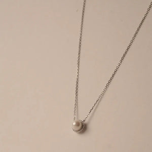 Elevate your jewelry collection with this classic and elegant pearl halo necklace, a symbol of grace and refinement.
