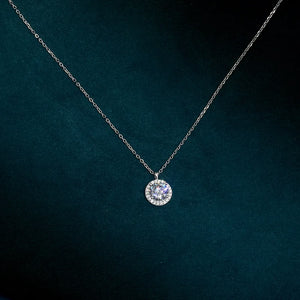 Radiate timeless elegance with this Round Halo Crystal Pendant Necklace. Featuring a brilliant round-cut centerpiece surrounded by a sparkling halo of crystals, this pendant is designed to capture and reflect light from every angle. Suspended from a sleek silver-tone chain, it adds just the right touch of glamour to any outfit.