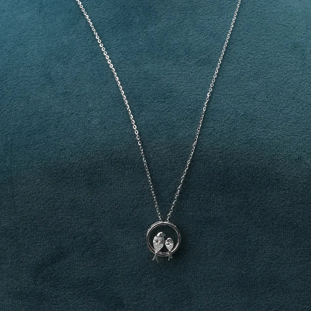 Celebrate love, togetherness, and everlasting bonds with this beautifully crafted Love Birds Pendant Necklace. Featuring two delicate birds perched inside a graceful circular frame, this pendant symbolizes unity, affection, and harmony. The birds are adorned with sparkling stones, adding a touch of brilliance and charm to the elegant design.