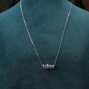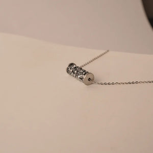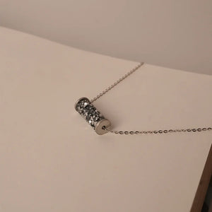 Elevate your everyday style with this modern cylinder pendant necklace, designed for those who appreciate subtle elegance with a contemporary twist. The cylindrical pendant is beautifully encrusted with shimmering stones, creating a radiant sparkle with every movement. Suspended gracefully on a sleek chain, this piece blends minimalism with a touch of glamour.