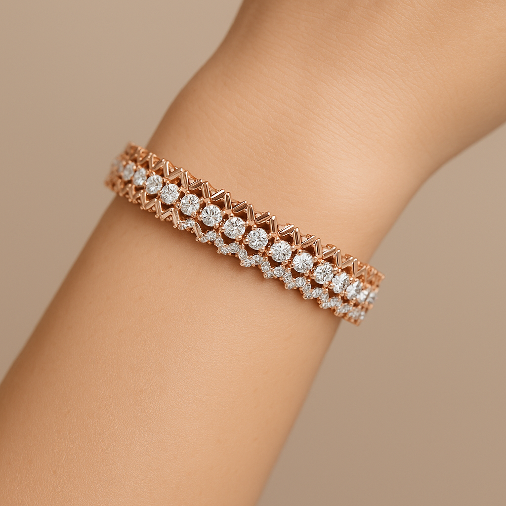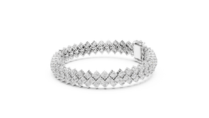 Elevate your wristwear with this breathtaking Lab-Grown Diamond Criss-Cross Link Bracelet. Designed for the modern woman who values both style and sustainability, this piece features three interlocking rows of brilliant-cut lab diamonds arranged in a sophisticated geometric pattern.