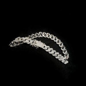 This substantial bracelet features a classic Miami Cuban link design, a timeless symbol of power and prestige. Each link is meticulously and completely encrusted with hundreds of hand-set, brilliant-cut pavé stones that create an incredible, continuous sparkle from every angle. The bracelet is secured with a robust and seamless box clasp, which is also fully "iced-out" to ensure the flow of brilliance is uninterrupted.